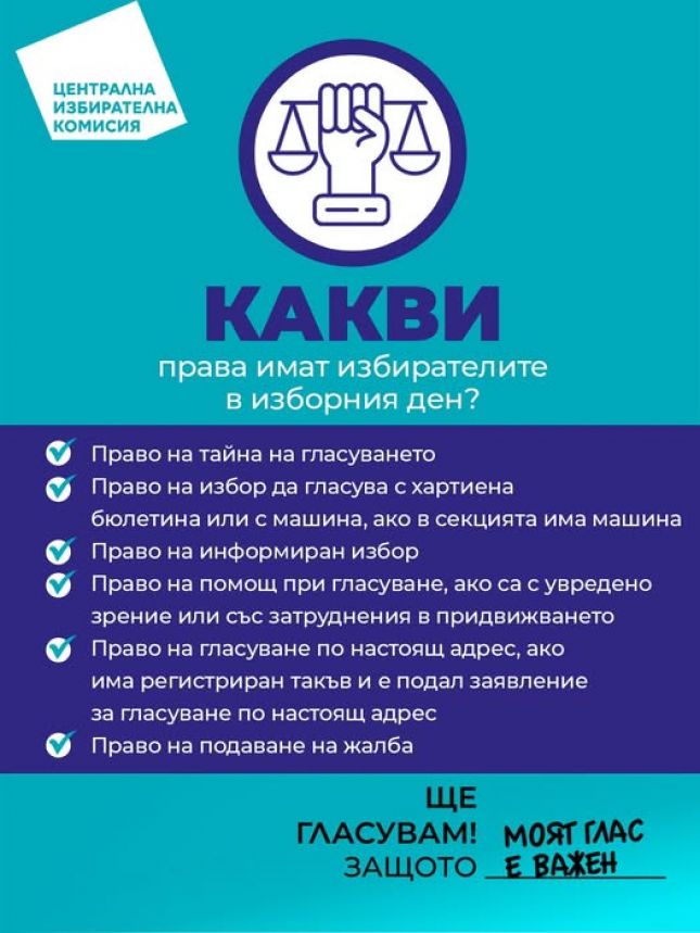 Централната избирателна комисия (ЦИК) публикува информация за правата на избирателите в изборния ден.