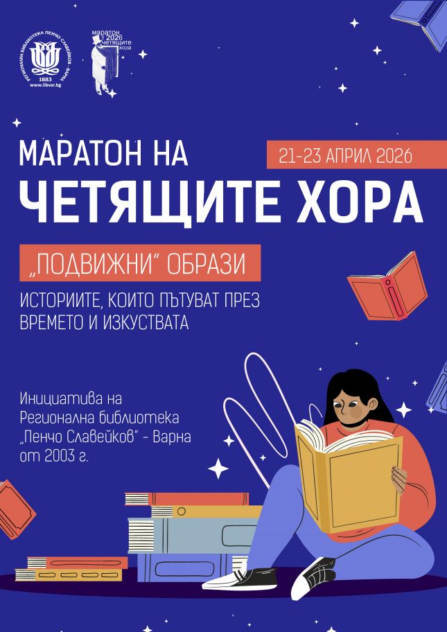 От 21 до 23 април в Регионална библиотека „Пенчо Славейков“ във Варна ще се проведе 24-тото издание на „Маратон на четящите хора“. Тази година събитието ще премине под мотото „Подвижни образи“ – истории, които пътуват през времето и изкуствата.