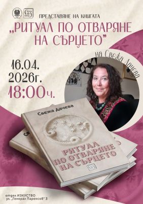Регионална библиотека „Пенчо Славейков“ кани варненци на среща разговор с Свежа Дачева по повод новата ѝ книга „Ритуал по отваряне на сърцето“.