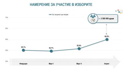Ръст в желанието да се упражни правото на глас и съответно по-висока избирателна активност се очакват на предстоящите предсрочни парламентарни избори на 19 април. Това показва национално представително проучване на Алфа Рисърч, проведено в периода 13–15 април