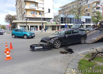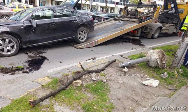 Водачът на автомобила - "Ауди" с варненска регистрация, е самокатастрофирал. В инцидента няма други участници. Мъжът е без никакви наранявания, отказал е да бъде прегледан.