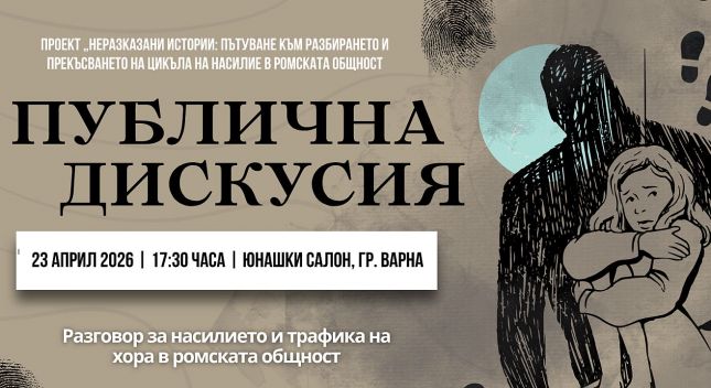 На 23 април 2026 г. от 17:30 ч. в Юнашкия салон ще се проведе публична дискусия, посветено на резултатите и решенията по проект „Неразказани истории: Пътуване към разбирането и прекъсването на цикъла на насилие в ромската общност“.