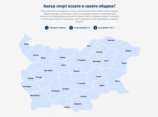 Нов подход към планирането на изграждане на спортна инфраструктура у нас въвежда инициативата „Глас за спорт“ (glaszasport.com), която дава възможност на гражданите директно да посочат от какви спортни съоръжения има най-голяма нужда в техните общини.
