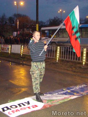 Една част от участниците бяха с плакати, чието най-често послание бе „Долу кмета”. Младежи носиха национални флагове със знака на БНС
