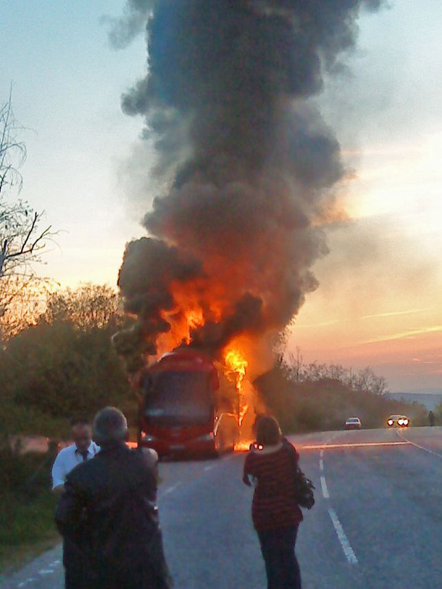 Изгоря автобус на Биомет по линията София-Варна
