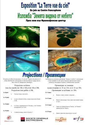18 уникални снимки на Ян Артюс-Бертран могат да бъдат разгледани в изложбата "Земята видяна от небето", която ще продължи през целия месец юни 2010 във Франкофонски център-Варна. Изложбата представлява необикновени фотографии, заснети отвисоко над места от целия свят. Достъпът до експозицията е свободен. Изложбата "Земята видяна от небето" представлява 18 уникални снимки, заснети във въздуха от френския фотограф Ян Артюс-Бертран. Експозицията е обиколила 100 държави и е разгледана от над 100 милиона души в цял свят. Изложбата във Варна ще бъде открита от Г-жа Милена Ангелова-директор на Алианс франсез-Варна и Г-н Адриан Бонгран – стажант-комуникации в Алианс франсез-Варна на 15 юни 2010 от 17.30ч. във Франкофонски център-Варна.
