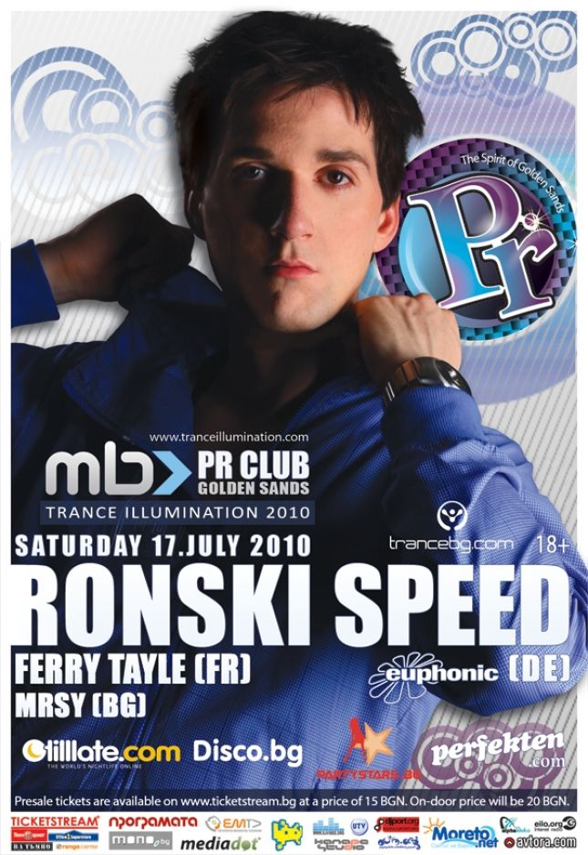 Легендата на транс и прогресив звука Ronski Speed и авторът на транс парче номер 1 за 2009 г. Ferry Tayle ще бъдат гости на четвъртото издание на "Trance Illumination", което ще се проведе на 17 юли в клуб "PR", Златни Пясъци.