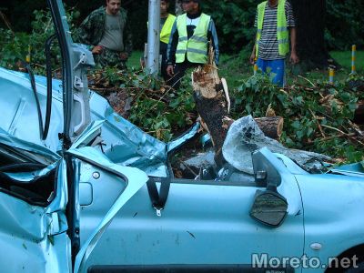 Мъж загина след като дърво падна върху автомобила му (Видео)