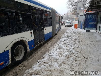 Зима, сняг, спирка, градски транспорт, автобуси