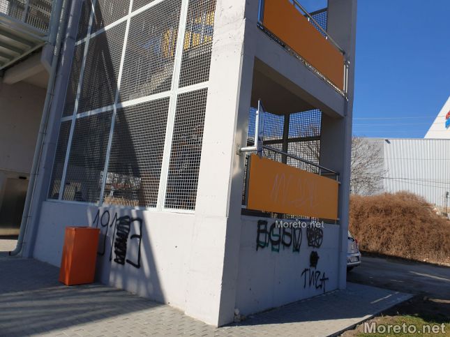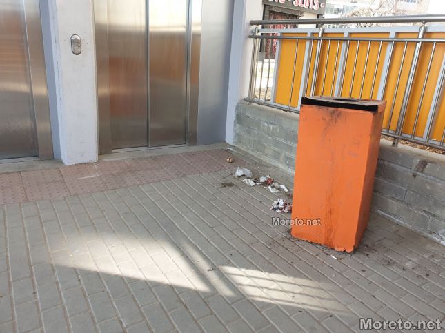 Разпилени боклуци по земята и мръсотия по стените до асансьорите прави лошо впечатление на преминаващите по съоръжението до стадион "Спартак". За съжаление и това място не бе подминато от вандала, който разлепва призиви "Не слушай гласовете на Демоните".