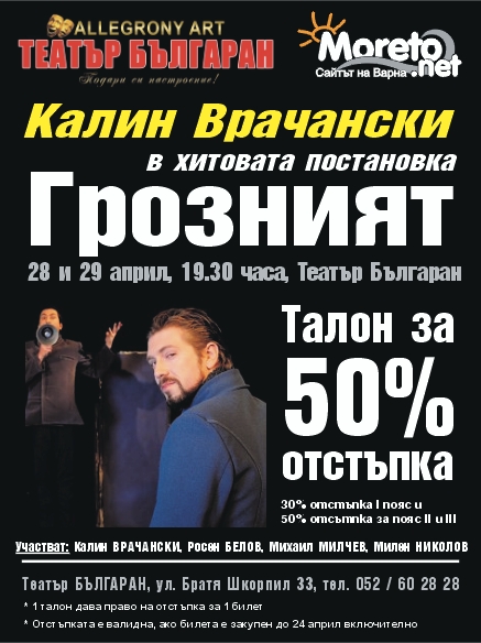 · Талонът за отстъпка е валиден единствено на касите на театър БЪЛГАРАН.