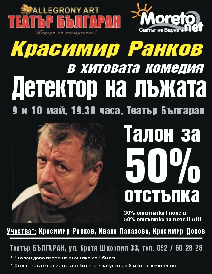 · Талонът за отстъпка е валиден единствено на касите на театър БЪЛГАРАН.